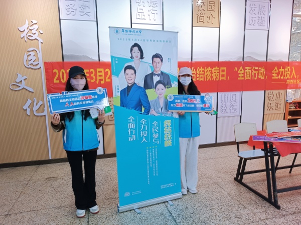 为积极响应国家号召,普及结核病防治知识,增强师生健康防护意识,终结结核流行。后勤服务集团(校医院)联合颍西社区卫生服务中心,于3月24日在西湖校区开展了主题为“全面行动、全力投入、全民参与、终结结核”的结核病防治宣传活动,吸引了广大师生热情参与。