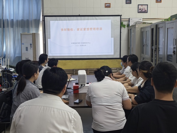 5月9日,按照国家市场监督管理总局,国家卫生健康委员会颁布的《GB 2760-2024食品安全国家标准 食品添加剂使用标准》(2025年2月8日正式实施)要求,饮食服务中心开展食材验收、索证索票管理等专项培训,饮食服务中心管理人员和各食堂经理共20余人参加。饮食服务中心副主任杨勇要求要筑牢食品安全在校园工作中的核心地位,强调规范食材验收与索证索票是保障师生健康安全的关键。