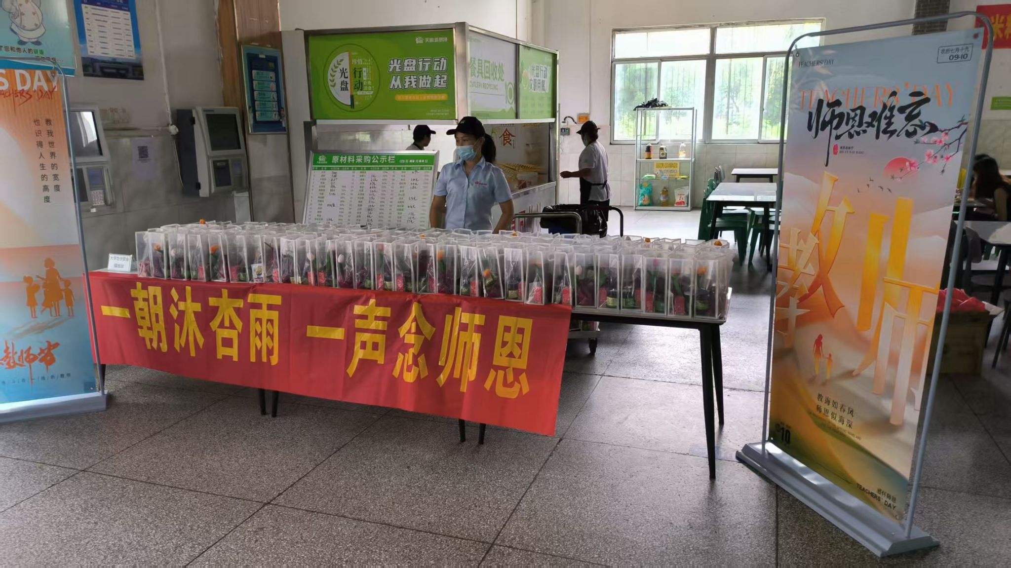 同时,教师节来临之前,后勤管理与基本建设处开启了以 “花开载敬意,桃李寄深情” 为主题的感恩教师活动。各食堂提前精心筹备新鲜鲜花,以这份清新雅致的心意,向辛勤耕耘在教学、科研与管理岗位上的全体教职工,致以节日的诚挚问候与崇高敬意,用细节传递校园对师者的尊重与感恩。