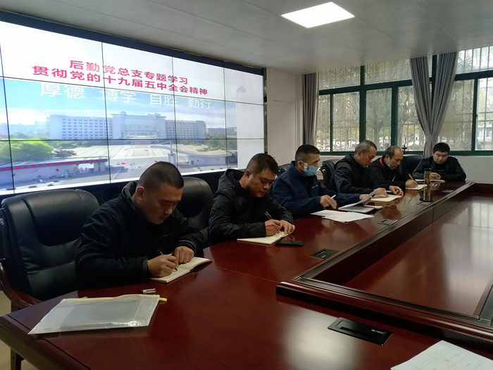 11月19日,后勤党总支理论学习中心组在后勤服务集团会议室召开(扩大)会议,专题学习贯彻党的十九届五中全会精神。后勤党总支委员和支部书记参加学习会。后勤党总支书记郝大林主持学习会。