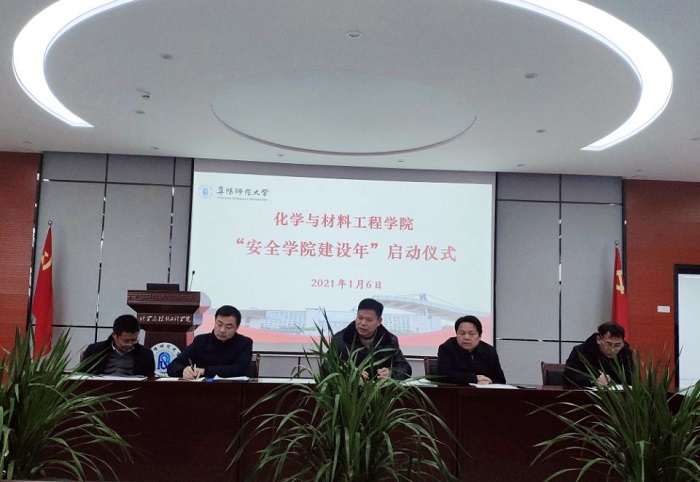 为把学校有关安全稳定工作会议精神落到实处,营造安全有序的学习、工作环境,2021年1月6号下午,化学与材料工程学院在新工科楼二楼圆形报告厅举行“安全学院建设年”启动仪式。仪式由学院党委书记马健主持,学院党政领导班子以及全体教职工参加。