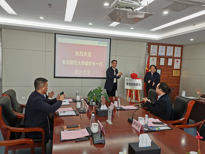 会谈后,盛良全院长和陈洪周董事长共同完成了基地的揭牌仪式,宣告阜阳师范大学与安徽国泰众信检测集团校企合作实践平台正式成立。仪式结束后,双方就加强合作进一步做了深入交流,双方表示后期将在人才培养、科学研究、环境监测、奖项申报、成果转化、检测方法开发等方面保持常态化合作。(撰稿:张震 图片:张震 学院审核:盛良全)