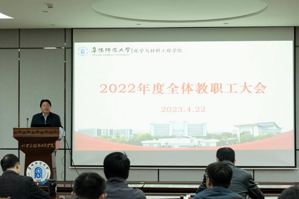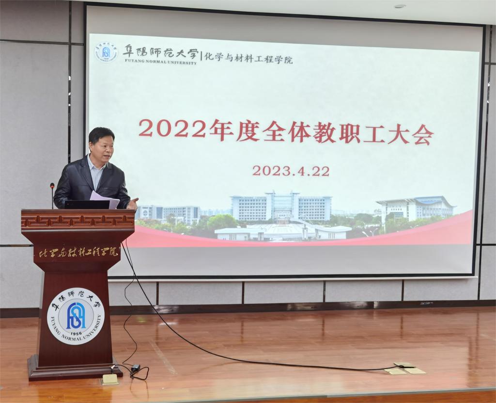 4月22日上午,我院2022年度教职工大会在理科综合楼二楼圆形报告厅隆重举行,学院党政领导及全体教职工出席。