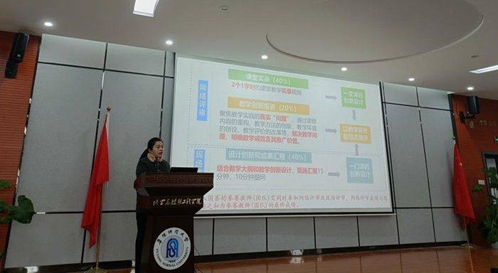 刘晨旭老师结合自己在第四届全国高校教师教学创新大赛获得国赛三等奖的经历与大家分享了教学创新大赛的准备过程、心得体会及教学竞赛的核心要点。刘老师重点从课程简介、痛点分析、创新思路、创新举措和成果收获等申报材料的关键环节进行了详细解析,并对如何制作教学创新报告和课堂教学视频录制提出了指导性建议。