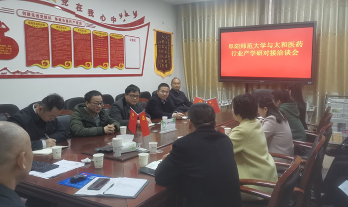 牛贵宏首先向与会的太和县经信局领导以及医药化工企业代表详细介绍了我校以及我院的整体情况,特别是医药化工领域的人才储备和大型仪器等资源,并邀请对方莅临学院参观指导以及洽谈合作。