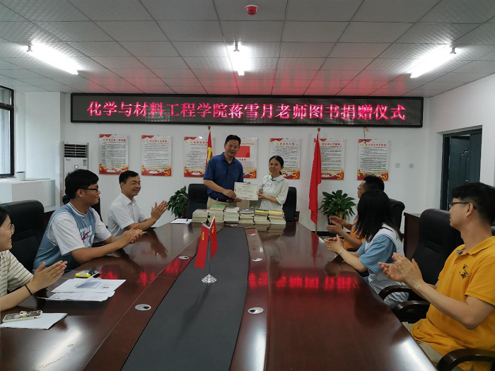7月1日,正值中国共产党成立100周年之际,化学与材料工程学院党员教师蒋雪月把自己珍藏的47本图书捐赠给学院的“图书角”,以实际行动向党的百年华诞献礼。