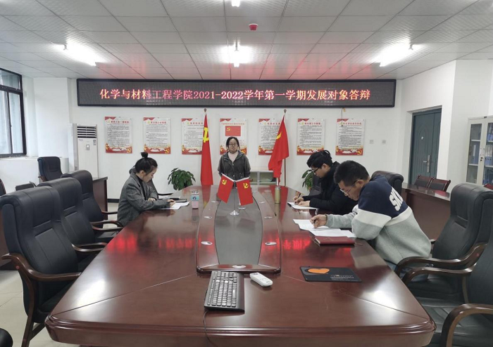 为充分发挥学生党员的先锋模范作用,确保大学生党员发展质量,扎实推进我院基层党组织标准化建设,严格落实“控制总量、优化结构、提高质量、发挥作用”的十六字方针,从严做好学生党员发展和教育管理工作,11月10日下午,化学与材料工程学院在理科教学综合楼C207,C204会议室分组举行了学生党员发展答辩会。参加答辩会的评委有学院党委书记马健,党委副书记田志坚,辅导员董淳一、曹婷、王洪刚、朱慧慧。