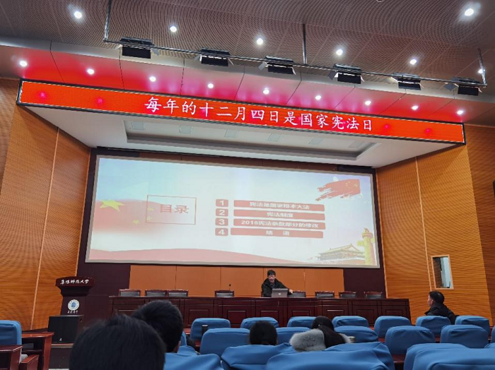 为深入学习贯彻习近平法治思想,营造学习宪法的浓厚氛围,在全国第八个国家宪法日到来之际,我院邀请法学院王书庵教授来院举办宪法知识专题讲座,我院全体教职工参加了此次讲座。