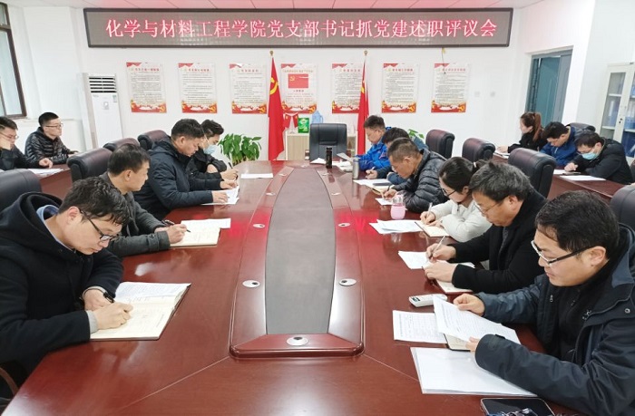 2022年3月25日上午,化学与材料工程学院党委在西湖校区理科综合楼C楼207会议室召开党支部书记抓党建述职评议会,会议由学院党委书记马健主持,院党委委员、各支部书记,以及师生党员代表参加了会议。