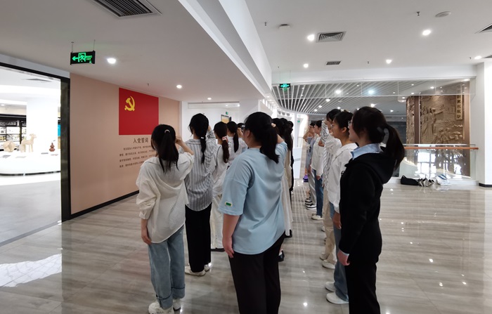 参观结束,全体新发展党员面向党旗进行了庄严的入党宣誓仪式。