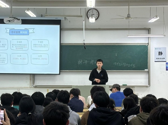 为帮助正在考研的大三学生更好地应对考研挑战,帮助同学们进一步了解考研流程,明确备考方向,4月13日晚,我院“一站式”学生社区功能型党支部于躬行D楼111教室组织开展“先锋面对面”经验分享会,由支部已研考上岸的学长学姐为正在准备初试的同学们传经送宝,答疑解惑。