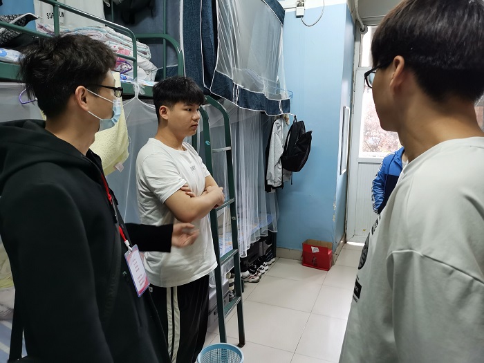 本着“全面摸排、精准掌握”的原则,辅导员们深入每一个宿舍检查环境卫生和设施安全情况,深入了解每一个学生对学校疫情防控政策的知晓和执行情况,反复叮嘱同学们一定要遵守学校疫情防控要求和校规校纪,不信谣、不传谣,严格外出请假审批手续、坚持做好钉钉健康打卡、积极主动接种疫苗、注意保持宿舍通风和干净整洁,切实增强防火、防盗、防诈骗意识,切实增强网络舆论安全意识,切实做好宿舍文化氛围营造,养成良好的卫生、生活和学习习惯。