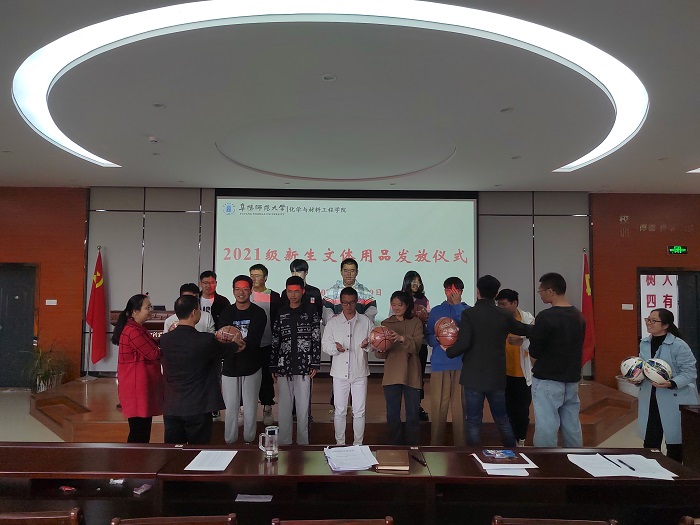 为增强大学生体育锻炼意识,营造人人参与体育运动的浓厚氛围,2021年10月29日,化学与材料工程学院在西湖校区理科教学综合楼二楼圆形报告厅举办2021级新生文体用品发放仪式。化学与材料工程学院党委副书记田志坚,全体辅导员以及2021级各班班长、体育委员参加本次活动。