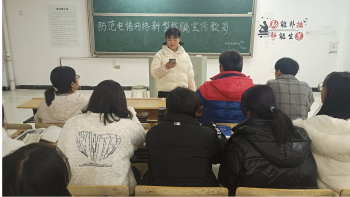 为切实做好反电信诈骗的宣传教育工作,进一步提高学生的防范电信网络诈骗意识,进一步增强学生的反电信诈骗意识,并且识别电信诈骗的能力。近期,我院组织各班级召开“防范电信诈骗,维护自身权益”的主题班会。
