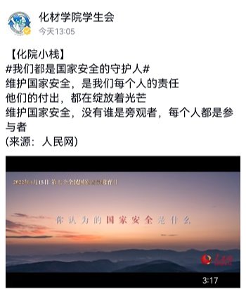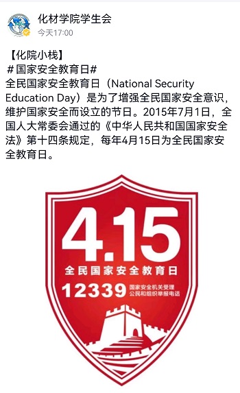 维护国家安全人人有责。为引导师生树牢总体国家安全观,切实提高师生维护国家安全的积极性、主动性,化学与材料工程学院将国家安全教育与学院事业发展和学生思想政治教育工作相结合,组织开展了系列宣传教育活动。