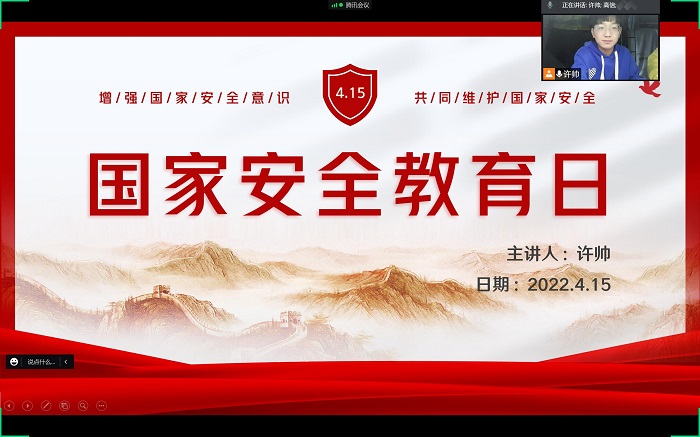 组织开展国家安全教育日主题团日活动。通过主题团日、班会等活动有针对性地开展大学生安全普法教育,引导大学生树立国家安全人人有责、人人尽责的意识,进一步增强学生的爱国主义情感。