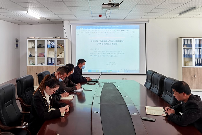 会议还学习了《关于印发(阜阳师范大学辅导员队伍建设管理办法(试行))的通知》(校学[2022]1号),并对近期疫情防控、学生思想动态调研等工作做出了安排和要求。
