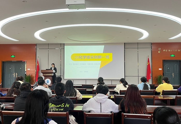获评“五四红旗团支部”的 2020级应用化学1班学生代表郭函娟从团支部的思想建设、组织建设、学风建设、如何开展主题团日、课外学术科技活动、校园文化建设等八个方面进行细致的分享。获评“十佳文明班级”的2020级化学拔尖1班学生代表廖楠楠从班级成员管理、班级规章制度、班风学风建设、学科竞赛成果等几个方面进行分享。获评“十佳文明宿舍”的2020级化学师范1班的陈诺从宿舍成员荣誉介绍、宿舍卫生、规章制度等五个方面进行深入汇报。