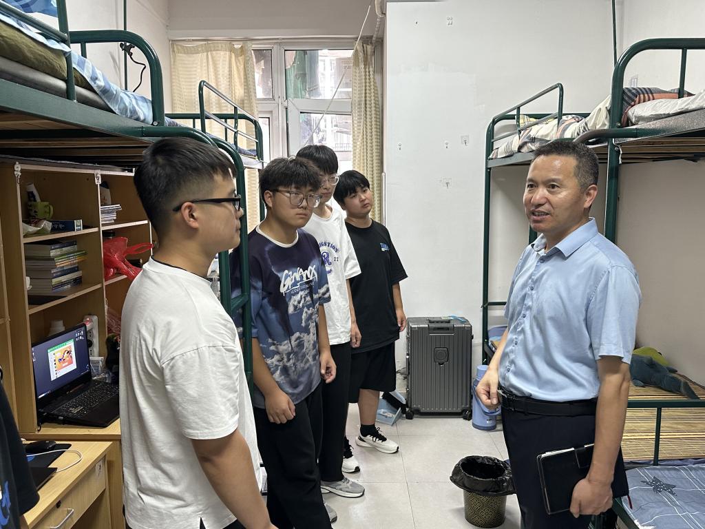 迎新期间,学院领导及新生辅导员深入新生宿舍走访调研,开展安全教育与风险隐患排查工作。每到一个宿舍,用亲切的话语同新生们进行沟通,关心新生的住宿情况与学习环境。走访过程中,学院领导、老师们不断激励新生们在学业上要有发奋图强、勇攀高峰的精神,在业余时间要不断提高身体素质,培养乐观、积极、健康、向上的良好心态,努力成为全面发展的高素质人才。一句句问询,一个个微笑,一遍遍叮嘱,都充满了对学生的关怀,折射出对学生的关爱。