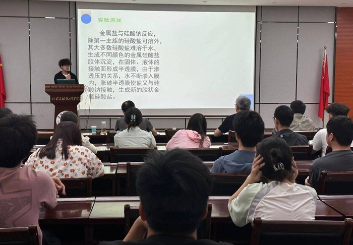 此次竞赛以实验讲解为主要形式,通过实践操作与理论讲解的巧妙结合,全方位地检验了参赛选手的化学知识储备和实验技能。在“水中花园”实验中,选手们以生动的图片和详尽的步骤说明,向观众展现了如何在水中培育出色彩斑斓的“花园”。在“氢氧化铁胶体的制备”实验中,选手们深入剖析了胶体的形成原理,并详细介绍了制备过程中的关键环节,还通过胶体演示了神奇的“丁达尔效应”,引发了观众们的浓厚兴趣。“银镜反应”实验中,选手们清晰解释了银化合物溶液在还原剂作用下如何被还原为金属银的过程,并强调了实验过程中的关键点,如试剂的精确称量、温度的严格控制等,体现了他们对实验的严谨态度。在“醋酸解离常数的测定”实验中,选手们深入浅出地讲解了醋酸在水溶液中的电离平衡过程,以及如何通过电位滴定法来测定醋酸的解离常数,展示了他们扎实的理论基础和实验技能。评委老师们对选手们的表现给予了高度评价,并从实验细节、PPT制作等方面提出了宝贵的建议,帮助他们进一步提升自己的能力和水平。经过激烈的角逐,陈卓同学获得了一等奖,张微微、徐笑笑同学获得了二等奖,罗帅、戴如梦、马涛同学获得了三等奖。