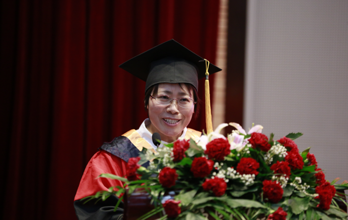 教师代表凡素华老师发言,希望毕业生永远保持严谨求实的态度,勇于创新和敢于实践的化学人精神,勤于锻炼身体,积极乐观的面对生活的一切困难。随后毕业生代表李哲和在校生代表苏馨如进行了发言。