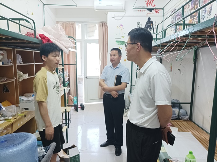 为进一步做好毕业生就业工作,倡导文明离校,6月12日下午,学院党委副书记牛贵宏、院长张宏、副院长陈水生、副书记田志坚和毕业班辅导员深入2024届毕业生宿舍,走访看望毕业生。