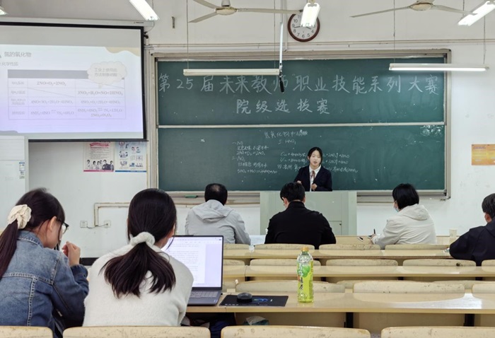展示结束后,评委老师针对选手们的教学设计、模拟课堂等进行了细致点评,为选手们的后续发展指明了方向。经过比拼,2022级化学(师范)2班汪雨璠获得一等奖,2022级化学(师范)3班徐自然、2023级化学(师范)3班王梦真两位同学获得二等奖,2023级化学(师范)1班孙文波、2022级化学(师范)3班徐苏等五位同学获得三等奖。