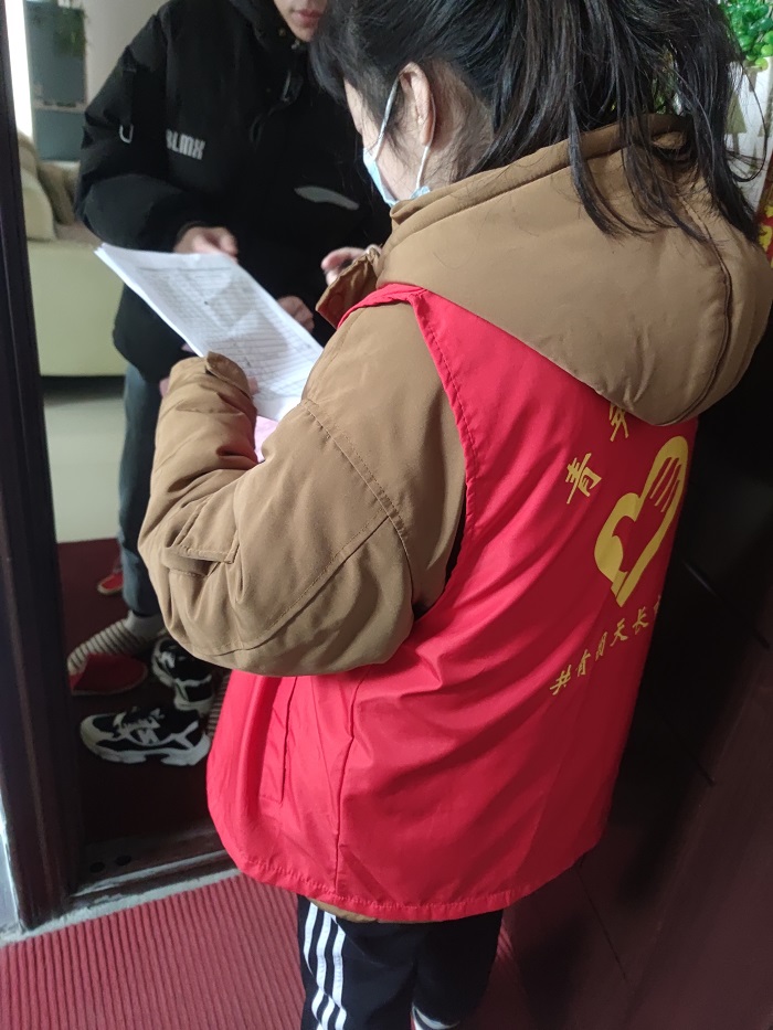 2019级化学师范1班冯雪飞,主动请缨参与天长市千秋街道社区疫情防控志愿服务工作。冯雪飞在经历统一的防疫工作培训后,自1月29日起严格遵守社区防疫要求,挨家挨户进行返乡人员信息登记,发放社区联系卡,宣传疫情防疫知识。