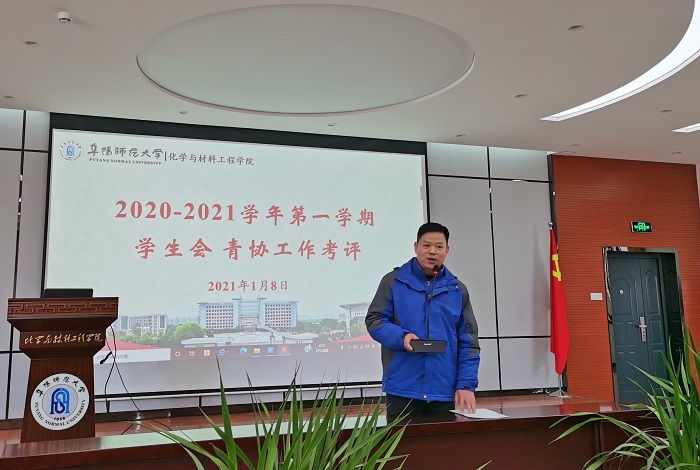 2021年1月9日,化学与材料工程学院开展2020-2021学年第一学期学生会及青协年度考评工作。院党委书记马健、副书记田志坚、院团委负责人董淳一及学生会主席团成员担任本次考评的评委,院学生会全体成员参与本次会议。