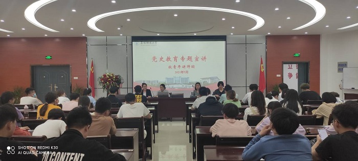 为贯彻落实习近平总书记关于党史学习教育的重要论述,扎实开展党史学习教育。2021年5月13日,在新化学楼二楼圆形报告厅,校青年讲师团成员生物与食品工程学院团总支负责人李婷婷、化学与材料工程学院团委挂职副书记王艳丽、马克思主义学院研究生周培培、化学与材料工程学院学生兼职副书记裔洁走进化我院开展党史学习教育宣讲,报告会由王艳丽主持,各班级团干部、学生会干部参加报告会。