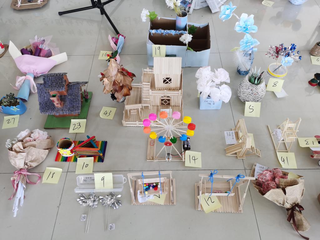 本次活动面向全院学生,得到了广大同学的积极参与,大赛共征集创意作品60余件。同学们依靠自己的想象和灵巧的双手,将各种废旧材料制作出了一系列手工制品,变废为宝。有的同学用废旧纸盒制作成了收纳盒、摆盆,有的同学用饮料瓶做成了笔筒、花瓶等,还有的同学用易拉罐制作出了精美的发簪、鲜花等,每件作品都被同学们赋予了不同的寓意。经过统一评审,2019级制药工程1班戴蓉蓉脱颖而出,获得本次大赛一等奖。