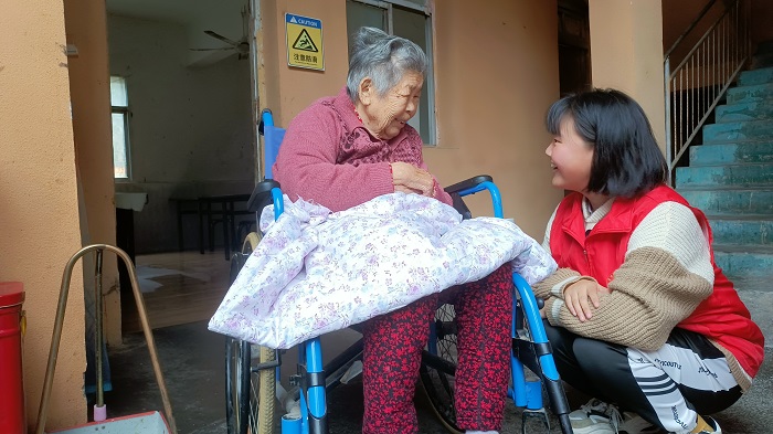 活动期间,志愿者们在点滴细节上关怀老人,以实际行动践行“学党史、悟思想、践行动、传温情”。大家以三人为一组,积极打扫卫生,整理房间,满怀热情地走到老人身边跟他们唠家常谈心,表演精心准备的小节目,以力所能及的方式给老人们送去温暖。活动最后,大家纷纷为老人们书写祝福语,留下真切的祝福。