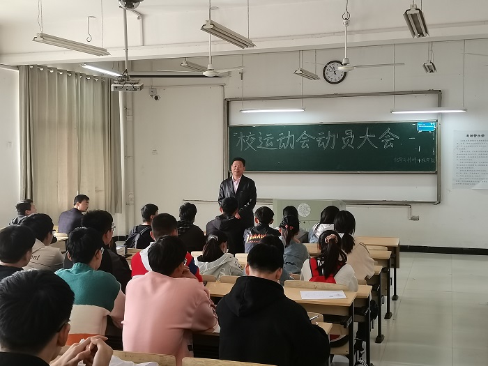 为积极备战阜阳师范大学第一届运动会,进一步激发学院运动员的参赛热情与活力,深入弘扬中华体育精神,2021年10月26日,化学与材料工程学院在西湖校区躬行D楼105教室召开校第一届运动会动员大会。化学与材料工程学院党委书记马健、副书记田志坚、院团委负责人董淳一及全体运动员参与本次大会。