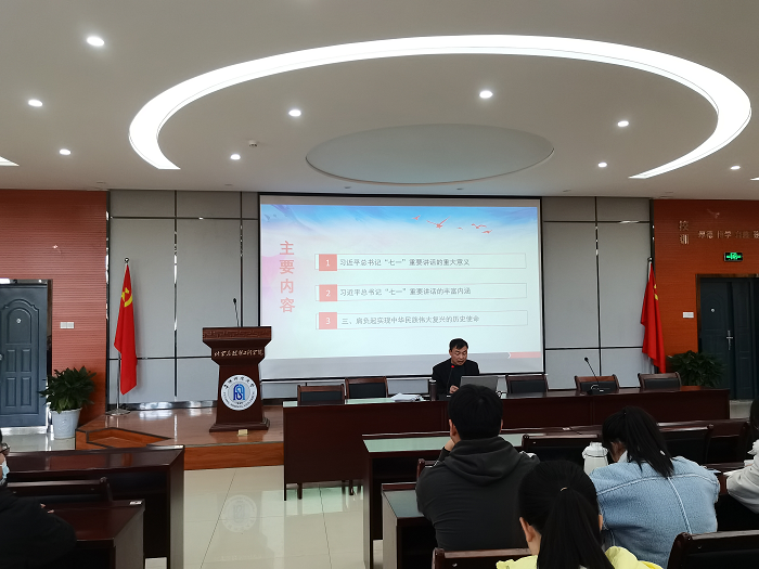 田志坚深入解读了“七一”重要讲话精神的重大意义和丰富内涵,指出,“七一”重要讲话实现了党的重大的理论创新,进一步丰富和发展了习近平新时代中国特色社会主义思想,是一篇马克思主义纲领性文献,是我们党团结带领全国人民奋进新征程的科学纲领和行动指南。他为同学们系统梳理了“第一个百年奋斗目标的成功实现”“确立党的百年奋斗主题”“四个伟大成就”“四个庄严宣告”等讲话的主要内容,尤其强调了伟大建党精神的深刻内涵和历史意义,勉励同学们牢记习近平总书记在“七一”重要讲话中对新时代中国青年提出的新要求,传承红色基因,赓续红色血脉,弘扬伟大建党精神,刻苦学习、勤于实践、不断提高自身的政治素养和综合能力增,自觉肩负起党和国家赋予的历史使命,为党和国家的事业贡献青春力量。