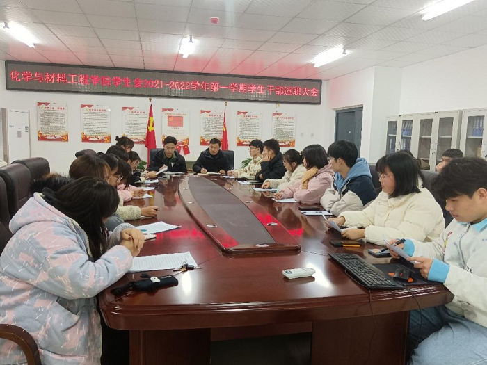 为进一步加强学生干部队伍建设,不断提高学生会服务质量和工作水平。2021年12月12日,化学与材料工程学院召开学生会干部述职考评会议,院党委副书记田志坚、院团委负责人许翔辉参加会议。