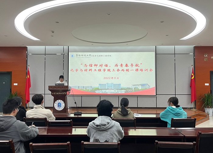 落实“三会两制一课”,是共青团保持和增强政治性、先进性、群众性的必然要求,是推进团要管团、从严治团的重要载体,是加强团员思想政治教育和自我教育,强化团员意识,提升基层团组织凝聚力和战斗力的制度保障。为更好落实有关规定,近日,我院团委在理科综合楼学术报告厅召开“与信仰对话,为青春启航”三会两制一课培训会,各班团支部书记参加。