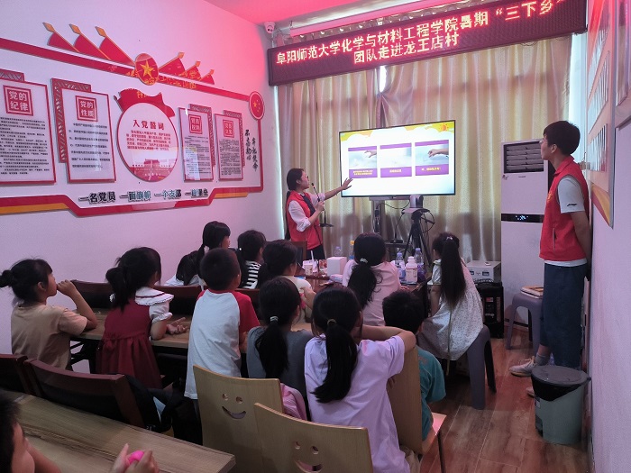 为深入学习宣传贯彻习近平新时代中国特色社会主义思想,全面贯彻落实党的二十大精神,引导和帮助广大青年学生上好与现实相结合的“大思政课”,在社会课堂中“受教育、长才干、作贡献”,引领青年学生立志做有理想、敢担当、能吃苦、肯奋斗的新时代好青年,6月26日-7月3日,我院“乡聚盛夏﹒筑梦青春”实践团奔赴颍州区京九办事处龙王店村面向小学生们开展了为期8天“少年儿童素质能力提升”志愿服务实践活动。