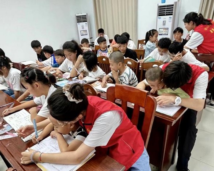 为了弘扬志愿服务精神,关爱留守儿童健康成长,分担留守儿童家庭教育的压力,实践团成员给曹集镇儿童进行课业辅导。团队成员们对留守儿童的作业及课堂学习中遗留的难点问题,进行耐心细致的讲解和辅导,循序渐进的引导、帮助孩子们解决学习中的难题,有针对性的解决了留守儿童无人辅导的问题。