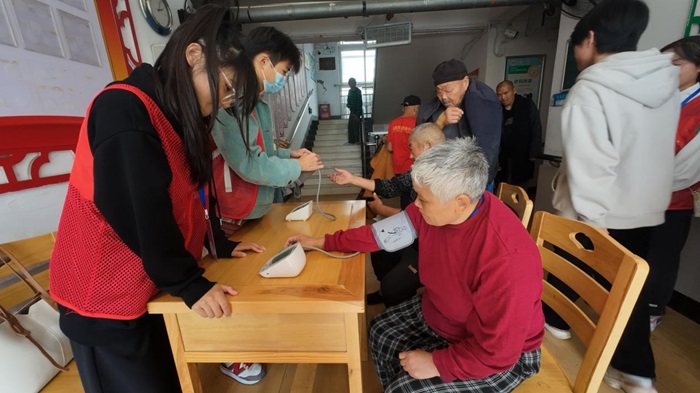 志愿者为老人们测量着血压,细致入微地记录每位老人的健康状况,并在操作过程中通过温情的关怀缓解了他们的紧张情绪。在此过程中,志愿者们不仅关注老人的物质需求,还注重丰富他们的精神生活。他们组织老人观看电影,并通过亲切交谈、倾听老人的故事、分享自己的生活经历,为老人们带来了欢笑和欢乐。活动结束后,志愿者们齐心协力打扫敬老院,为老人们创造了一个干净、整洁、舒适的生活环境。他们在敬老院的每一个角落忙碌的身影,宛如一道美丽的风景线,让老人们感受到了家一般的温馨与关怀。