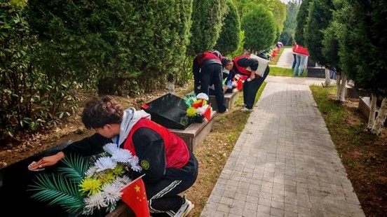 苍松翠柏掩映下的烈士陵园庄严肃穆。上午9时,全体人员整齐列队,向烈士纪念碑鞠躬默哀。随后同学们在工作人员的指引下,带着事先准备的清扫工具,分组展开清洁工作。一组同学手持扫帚,沿烈士主墓区清扫落叶。另一组同学用湿抹布小心翼翼地擦去墓碑上的浮尘。祭扫结束后,全体人员在讲解员带领下参观烈士纪念馆。馆内陈列的烈士遗物、书信及影像资料,生动再现了革命年代先烈们浴血奋战的壮烈场景。随着工作人员声情并茂的解说,同志们加深了对革命先烈英雄事迹的了解,深刻地感受到革命先烈矢志不渝的革命信仰、英勇献身的革命精神。