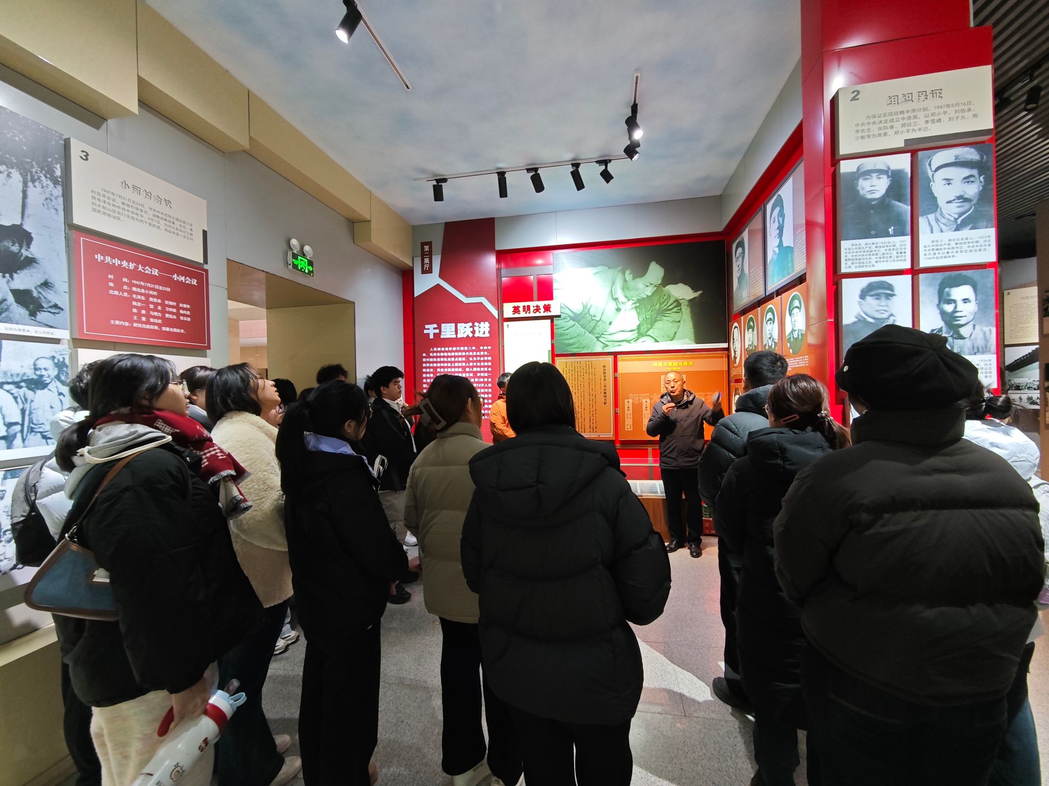 在庄严肃穆的千里跃进大别山纪念馆内,青马学员们跟随讲解员的引导,依次参观了“战略抉择”、“千里跃进”、“立足生根”、“浴血奋战”等主题展厅。一幅幅珍贵的历史照片、一件件斑驳的革命文物、一幕幕生动的影像还原,将大家带回了那个战火纷飞的峥嵘岁月。学员们驻足凝视,认真聆听刘邓大军在无后方依托的条件下,克服重重艰难险阻,千里跃进大别山,实现解放战争伟大战略转折的壮阔历程。大家深刻感受到了革命先辈们“勇当先锋、胸怀全局”的大别山精神,以及对党和人民无限忠诚的坚定信仰。