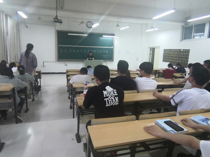 5月10日下午6:00,2019级应用化学一班在躬行D楼109开展“学风督察和劳动教育宣传周”活动,会议由班长赵文正主持,全体同学参加此次活动。