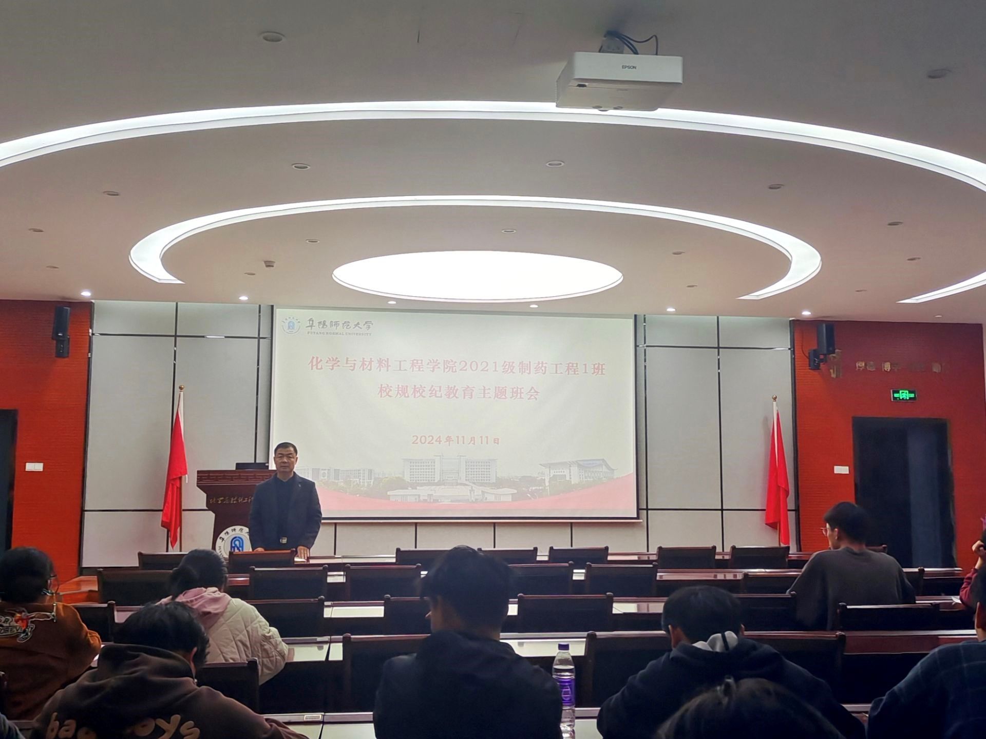 为进一步加强学生校规校纪和安全教育,推进学生学业发展和就业工作。11月11日晚,2021级制药工程一班在新化学楼圆形报告厅召开校规校纪暨安全教育主题班会。班会由辅导员田志坚主持。