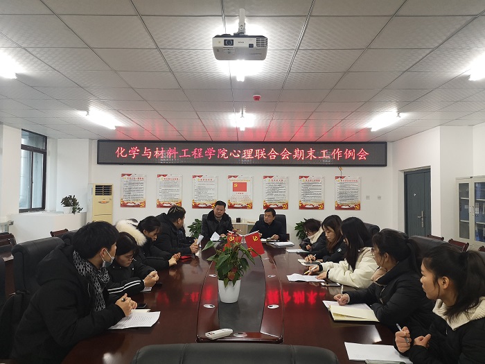 2021年1月8号,化学与材料工程学院心理联合会在新工科楼207召开年度工作总结会。会议由心理辅导员王艳丽主持,化学与材料工程学院党委书记马健、副书记田志坚出席会议,心联主席及各部长参会。