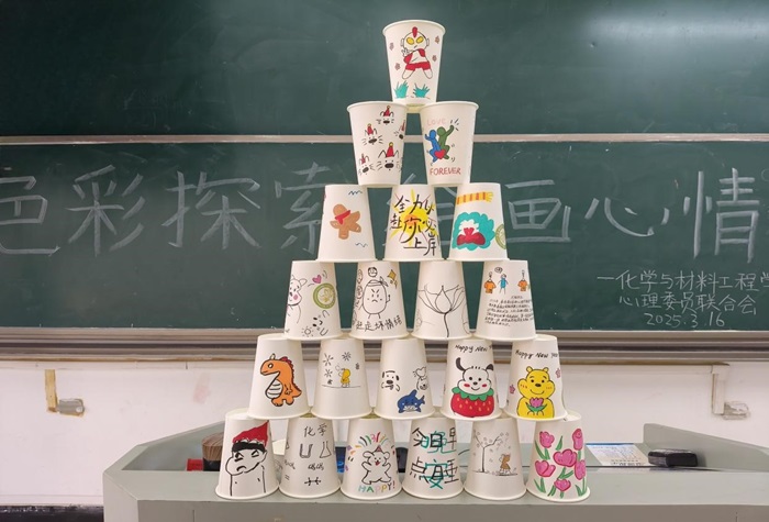 活动中,参与者首先共同学习了心理学知识,理解其在日常生活中的应用和意义。随后,每位同学领取一份专属纸杯及绘画工具,将所学知识转化为具体的视觉符号,利用色彩表达内心世界。