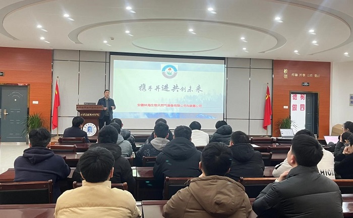 2月16日下午,安徽林海生物天然气装备有限公司在工科楼学术报告厅举办专场招聘会。企业负责人向学生介绍了企业发展历程、职业发展、薪资待遇等毕业生关心的问题,并与在场的毕业生进行互动交流,现场解答了同学们的疑问,并诚挚邀请学院有意向的优秀毕业生加入该公司。
