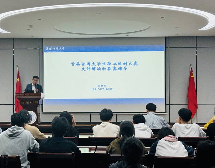 为引导大学生更好规划职业生涯,提升就业能力。10月24号,学院在理科综合楼二楼报告厅举办了“首届全国大学生职业指导规划大赛备赛辅导”大会,特邀创业学院副院长、职业规划师徐朝东做职业规划专题报告。徐朝东详细解读了大赛内容,介绍了职业规划的重要性,鼓励参赛选手以赛促就,不断加强生涯规划,明确就业目标,提升就业能力。