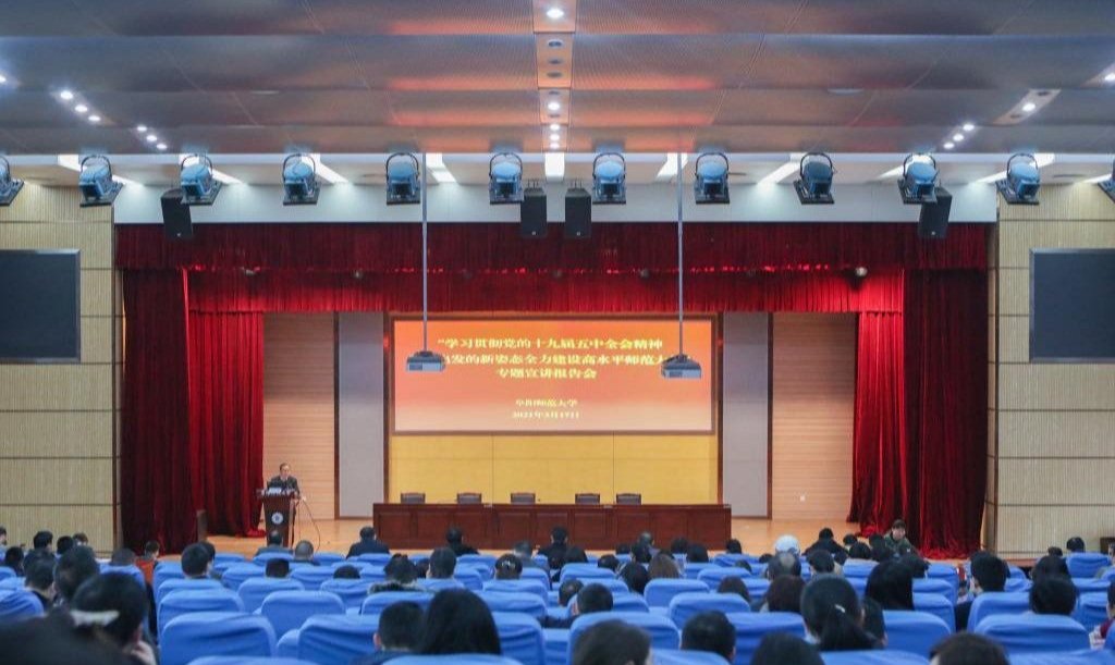 报告会上,校党政办公室、党委组织部、党委宣传(统战)部、纪委办公室、人事处、发展规划处、教务处、科研处、研究生处、马克思主义学院、教育学院等11位单位负责人,就学习贯彻党的十九届五中全会精神,以党代会年会精神为主线,立足岗位实际和个人思想认知,围绕高水平师范大学建设内涵发展、党的建设、宣传思想、纪检监察、发展规划、队伍建设、教育教学、科学研究、学科建设、思政课程以及师范专业教育等方面作了宣讲报告。