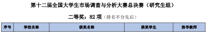 全国大学生市场调查与分析大赛由中国商业统计学会主办,是面向海峡两岸高校大学生的一项公益性专业赛事,旨在引导大学生基于大数据时代背景加强创新和实践,提高学生的组织、策划、调查实施和数据处理与分析等专业实战能力,培养学生的社会责任感、服务意识、市场敏锐度和团队协作精神。本届全国大学生市场调查与分析大赛于2021年9月启动,全国共有289所高校、2321支团队参加研究生组的角逐。受疫情影响,总决赛于5月14日至5月15日通过线上方式进行,我校商学院研究生团队克服困难,精心准备,沉着应战,团队出击,在竞赛中全面展现了扎实的市场调查分析能力,取得了不俗的成绩。