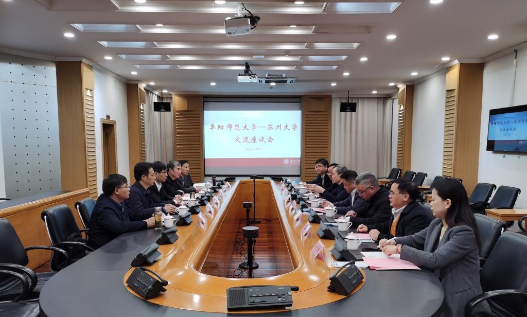 张庆旭指出,长期以来,苏州大学秉承“养天地正气,法古今完人”校训精神,培养造就了大批高素质人才,“双一流”建设成绩显著,是阜阳师范大学学习的榜样。他强调,这次考察交流既是落实长三角一体化发展战略部署,也是学校向苏州大学学先进、谋发展、加快建设高水平师范大学的一项重要举措。他希望,两校今后的交流合作要更深入、更广泛、更密切,强化高质量联动合作,为长三角一体化发展作出应有的贡献。